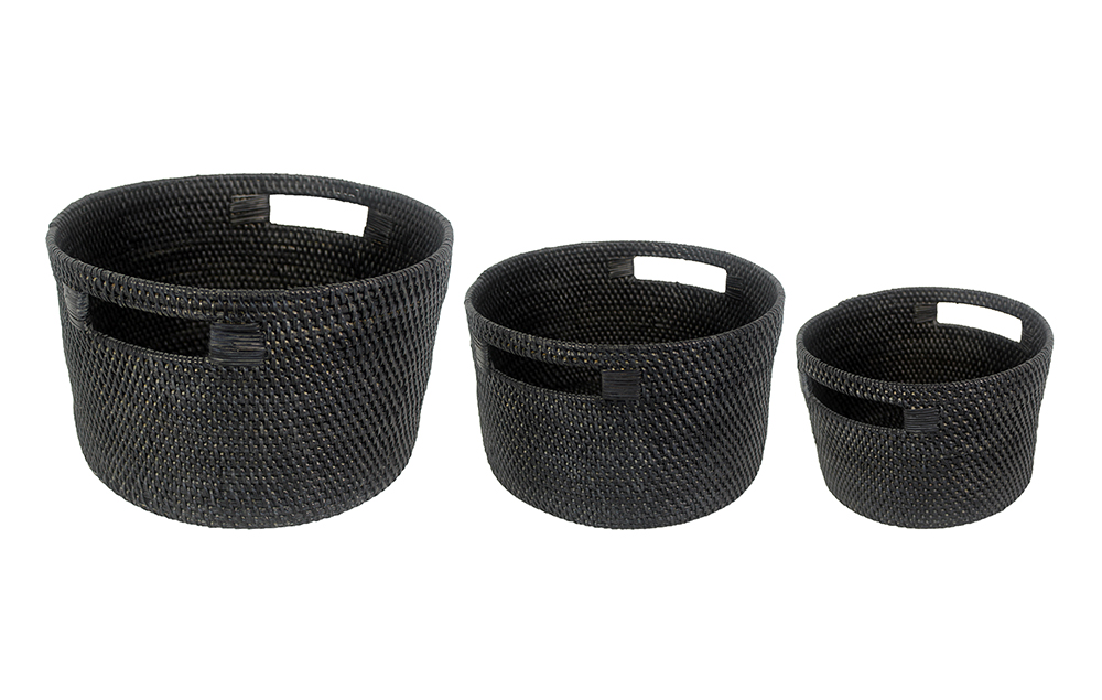 Black Rattan Tava Round Basket Set Of 3