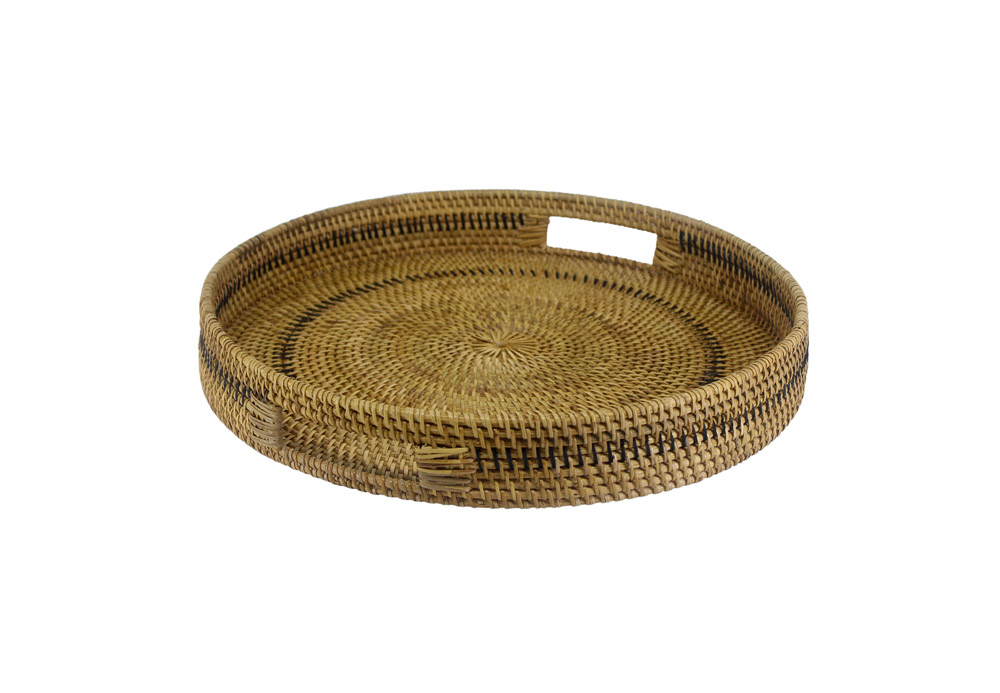 Natural Wooden Round Tray With Rattan Accessories