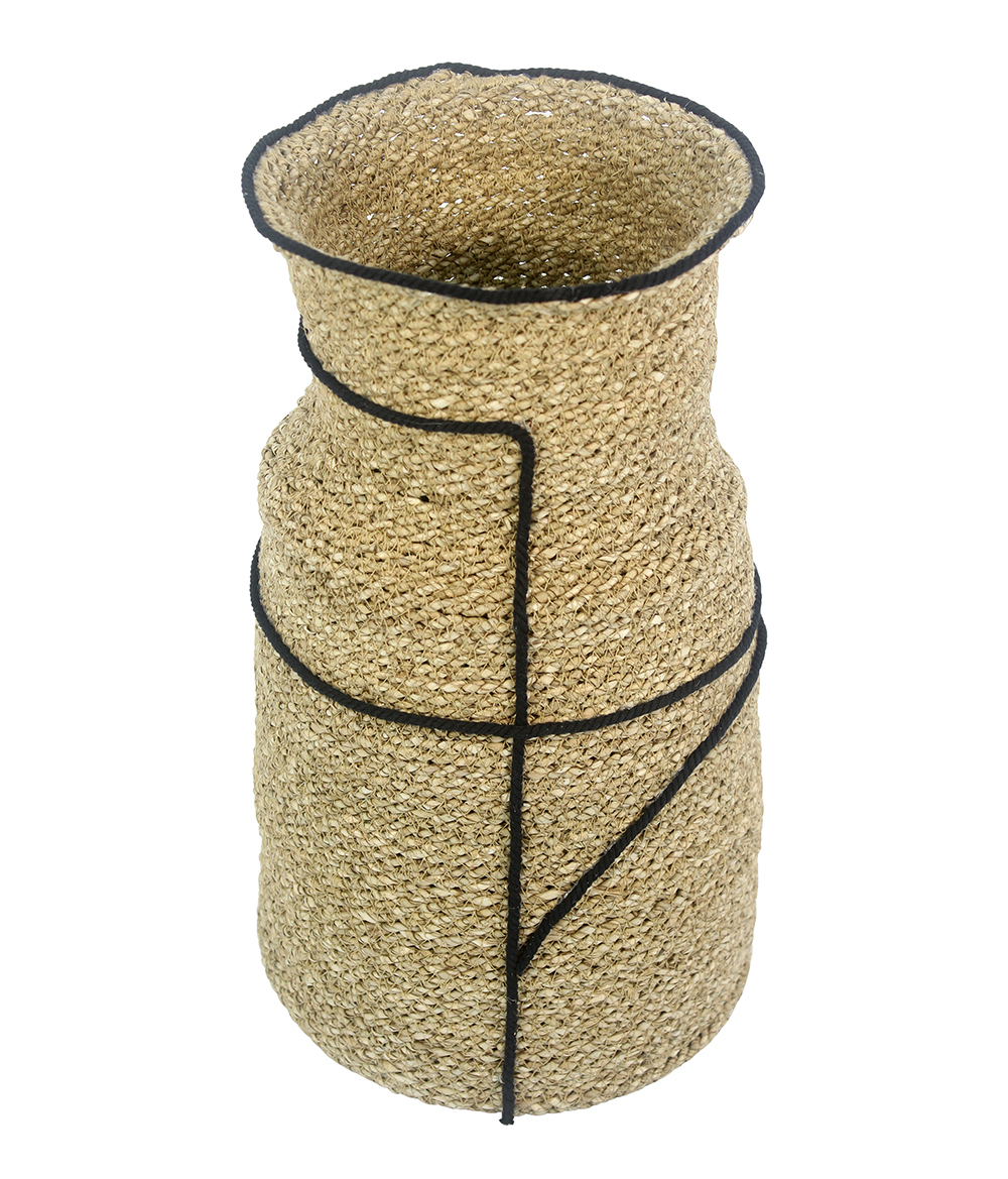 Natural Seagrass Vase With Black Cotton Accessories