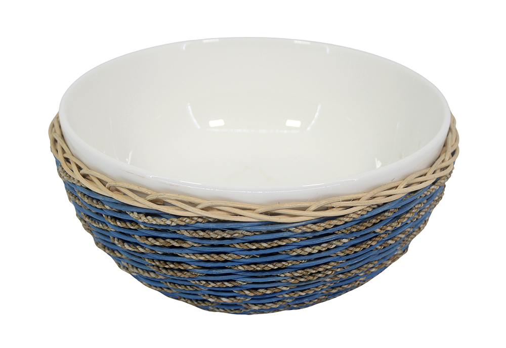 Natural Blue Rattan mix Seagrass Round Bowl With Ceramic Insert