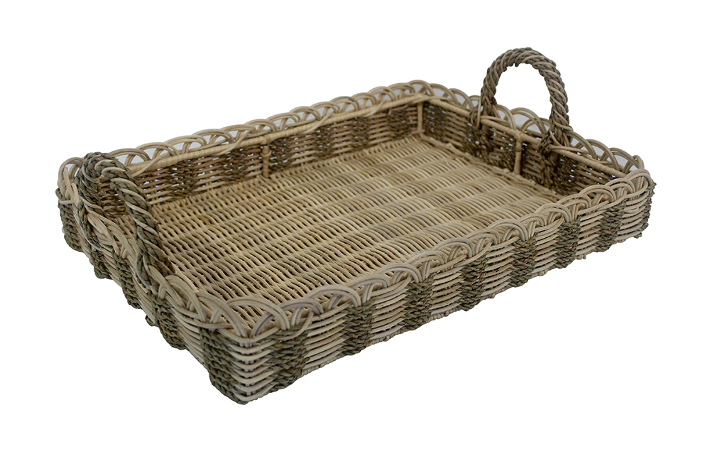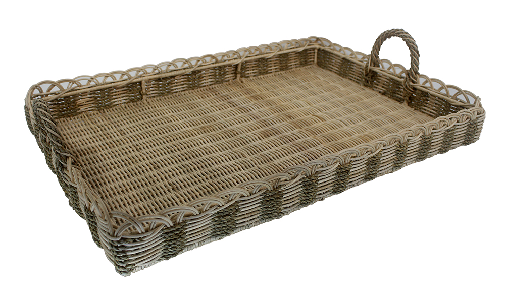 Natural Rattan Mix Seagrass Rectangular Tray Set Of 2